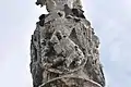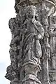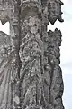 Le fût est divisé en quatre étages horizontaux séparés verticalement par quatre pilastres à clochetons montant jusqu'à la hauteur du quatrième étage, séparé des autres par une moulure saillante. Entre ces pilastres s'élèvent, dans l'étage inférieur, quatre colonnes dont les chapiteaux servent de consoles à quatre statuettes qui forment le second étage ; elles sont surmontées de dais, sur lesquels se dressent encore, dans le troisième étage, quatre autres statuettes. Celles-là représentent :
