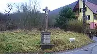 Une autre croix se trouvait sur le chemin à proximité de la cité ouvrière. Cette croix reposait sur un ancien pilier provenant sans doute d’une vieille construction datant de l’époque du prieuré de Lièpvre. Le pilier était monté sur un socle cubique sans décor, portant une traverse et le millésime de 1765. La croix était tournée sur le rain du Calvin, la montée du Ménabois et les autres contreforts du Taennchel[8].