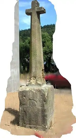 - Croix placées le long des chemins menant depuis les fermes, hameaux éloignés, jusqu'à l'église du village où avait lieu la cérémonie religieuse de l'enterrement. Ces emplacements servaient de halte de repos et comportaient parfois un reposoir en pierres au pied de la croix, ou taillé dans la roche en place, ce qui permettait d'y déposer le cercueil, souvent porté à dos d'hommes, et aux porteurs de se reposer.
