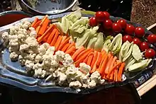 Les crudités sont des aliments consommés crus. Le terme (toujours employé au pluriel dans cette acception) désigne en particulier des mets composés de légumes frais et crus, assaisonnés ou non, servis en hors-d'œuvre, par exemple des carottes râpées, des radis, une salade de tomates ou encore des endives.