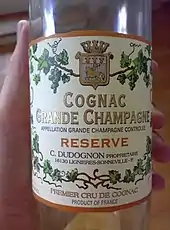 - L’appellation Cognac Fine Champagne Contrôlée détermine des eaux-de-vie issues exclusivement de Grande Champagne et de Petite Champagne avec au moins 50 % de Grande Champagne[4].