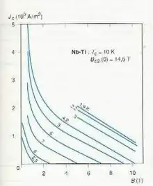 La figure 1 illustre ainsi les limitations du domaine supraconducteur pour le cas du niobium-titane.