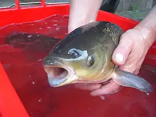 Ctenopharyngodon idella, communément appelé Carpe de roseau, Carpe herbivore, Carpe amour (car originaire du fleuve Amour), Amour blanc ou Carpe chinoise, est l'une des cinq espèces de carpes qui se rencontrent en Asie (les autres étant la carpe à grosse tête, la carpe argentée, la carpe miroir et la carpe noire). On l'y trouve naturellement (autochtone) dans le sud-est de la Russie et le nord-ouest de la Chine[1], mais elle a été également, souvent récemment, introduite par l'homme dans un grand nombre d'autres pays[2] (selon la FAO, en 1988, ce poisson avait déjà été introduit, volontairement, dans 139 pays[3]). On a longtemps faussement cru qu'il ne pouvait pas se reproduire hors de son aire naturelle de répartition et on y a donc prêté peu d'attention[4], mais ceci s'est révélé faux ; l'espèce s'est révélée invasive, tout comme les autres carpes asiatiques introduites de par le monde[5]. Selon une étude récente (2014) ayant comparé la gravité des impacts écosystémiques et économiques de 40 espèces de poissons exotiques introduits en Europe, la Carpe Amour a été classée en seconde position[6], confirmant les résultats similaires d'une étude américaine.