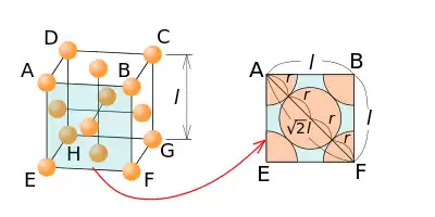 Le rayon de l'atome peut ainsi être déterminé à partir du paramètre de maille tel que : .