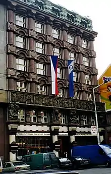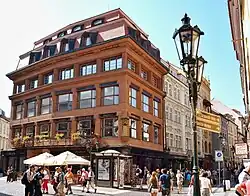 Le palais Adria, édifié en 1925, par Pavel Janák et un Allemand de Prague, Joseph Zasche, sur la Jungmanovo naměstí. Il fut conçu pour la maison d'assurances Riunione Adriatica di Sicurtà. Le décor sculpté est dû à Jan Šturda et Karel Dvořák. En 1926, lors d'une conférence à Prague, Le Corbusier voit dans le palais Adria « une construction massive de caractère assyrien ».