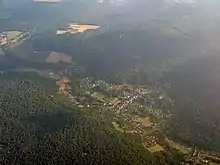 L'occupation des sols de la commune, telle qu'elle ressort de la base de données européenne d’occupation biophysique des sols Corine Land Cover (CLC), est marquée par l'importance des forêts et milieux semi-naturels (74,1 % en 2018), une proportion identique à celle de 1990 (74,1 %). La répartition détaillée en 2018 est la suivante : forêts (74,1 %), zones urbanisées (12,3 %), terres arables (6,1 %), prairies (4,6 %), zones agricoles hétérogènes (2,5 %), zones industrielles ou commerciales et réseaux de communication (0,5 %)[15]. L'évolution de l’occupation des sols de la commune et de ses infrastructures peut être observée sur les différentes représentations cartographiques du territoire : la carte de Cassini (XVIIIe siècle), la carte d'état-major (1820-1866) et les cartes ou photos aériennes de l'IGN pour la période actuelle (1950 à aujourd'hui)[Carte 1].