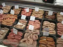 On estime qu'il existe environ 400 variétés de saucisses au Royaume-Uni. Les saucisses sont à la base de plats tels que le toad in the hole où elles sont enrobées dans une pâte lisse semblable à un Yorkshire pudding et cuites au four, éventuellement servies avec une sauce au jus d'oignon, réalisée en faisant revenir des oignons émincés plus d'une heure à feu doux, puis mélangée à un vin ou à une bière anglaise et enfin mise à réduire pour former une sauce servie notamment avec les bangers and mash. Une variante de la saucisse est le black pudding (réalisé à base de sang de porc), qui peut rappeler le boudin noir français ou la morcilla espagnole. Le pig's trotter (pied de porc), les tripes et le pâté de cochon sont également monnaie courante dans le nord.