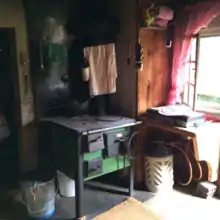 Il montre une petite cuisine d'un chalet d'alpage sur la Stafelalp (1 900 m) au-dessus de Davos Frauenkirch, où l'artiste résidait parfois. La maison est aujourd'hui encore proche de son état d'origine. Le tableau provient de la succession de Kirchner et fait aujourd'hui partie de la collection du Musée Thyssen-Bornemisza à Madrid.