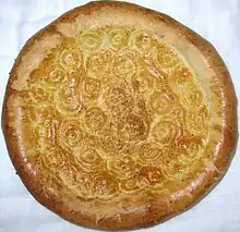 Bien qu'elle soit différente de la pâte phyllo du Moyen-Orient faite de baklava, la même appellation est utilisée pour le gâteau aux noix ouïghour[19],[20]. Dattes, raisins secs, noix et sirops sont les ingrédients du gâteau aux noix[21].