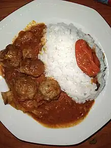 Riz au gras guinéen, souvent servi lors des cérémonies dans cette région. C'est le plat principal à Conakry et dans toute la basse côte[7],[8],[9],[10].