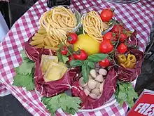 La verdure comprend : caponata, carciofi alla romana, ciambotta, panzanella, peperonata, pestât et pinzimonio.
