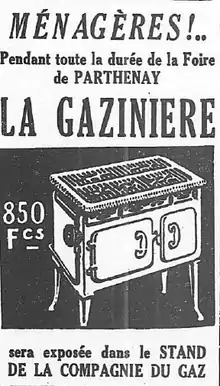 En 1934, la Société du gaz de Paris lance un concours de création d’un modèle spécifique de cuisinière d’où sort avec succès la Gazinière, présentée au Salon des arts ménagers de 1935[5].