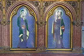 - Autel du Sacré-Cœur de la cathédrale Notre-Dame-de-la-Treille de Lille[36],[37]. Décidé en 1909, consacré en juin 1913, il est dessiné par Paul Vilain et exécuté par Desclée Frères.
