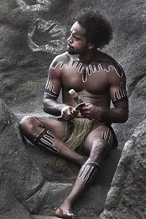 Les cérémonies des Aborigènes font partie de leur culture depuis le début et jouent toujours un rôle essentiel dans la société[11]. Elles ont lieu souvent, pour de nombreuses raisons différentes, qui sont toutes fondées sur les croyances spirituelles et les pratiques culturelles de la communauté, comme des histoires sur le Temps du rêve, les événements secrets sur les sites sacrés, les retours au pays, les naissances et les décès[12],[13]. Elles jouent toujours un rôle très important dans la vie et la culture des Aborigènes et sont pratiquées en Terre d'Arnhem et en Australie centrale dans le but d'assurer un approvisionnement abondant en nourriture. Dans de nombreuses régions, elles jouent un rôle important dans l'éducation des enfants, la transmission des traditions de leur peuple, des croyances spirituelles et des techniques de survie ; certaines cérémonies sont un rite de passage pour les adolescents ; d'autres cérémonies sont liées au mariage, à la mort ou à l'enterrement. La plupart comprennent des danses, des chants, des rituels et des décorations corporelles ou des costumes élaborés. L'art rupestre aborigène ancien montre que les cérémonies et les traditions se poursuivent encore aujourd'hui[14].