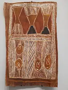 La peinture sur écorce est une forme d'art aborigène australien qui consiste à peindre l'intérieur d'une bande d'écorce d'arbre. Il s'agit d'une forme d'expression artistique continue en Terre d'Arnhem (notamment chez les Yolngu) et dans d'autres régions du Top End de l'Australie, y compris dans certaines parties de la région de Kimberley en Australie occidentale. Traditionnellement, les peintures sur écorce étaient produites à des fins pédagogiques et cérémonielles et étaient des objets éphémères. Aujourd'hui, elles sont très recherchées par les collectionneurs et les institutions artistiques publiques.