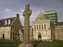 Les plus anciennes traces d'art décoratif sur le territoire écossais remontent à la période picte. Ce sont des sphères de pierre gravée de l'époque néolithique, de l'âge du bronze et de l'âge du fer[72]. La plupart ont été retrouvées dans le nord-est de l'Écosse, et plus particulièrement dans l'Aberdeenshire. Les motifs gravés sur les pierres sont de nature géométrique, spirales, cercles concentriques et lignes brisées. Les pierres pictes, de facture plus tardive, sont elles des stèles, datées entre le IVe siècle et le IXe siècle, dont le but et la signification ne sont que partiellement compris. Les symboles présents sur ces stèles, généralement organisés en paires, peuvent être répartis en trois catégories : symboles abstraits, animaliers, et objets (tels que miroirs et peignes). Peu d'autres exemples du travail artistique des Pictes sont parvenus à l'époque contemporaine.