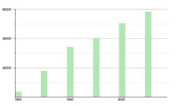 | 1970 | 17 895 | ▲ +388,4 % | |
