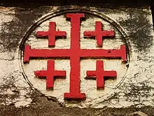 - La croix du milieu, à l'exclusion des autres quatre collatérales, est potencée.