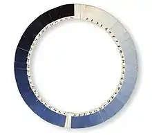 Il se compose de carrés de papier teint dans des tons de bleu gradués et disposés dans un cercle ou à un carré de couleur qui peut être comparé à la couleur du ciel.