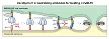 - les récepteurs Fc sont des protéines transmembranaires présentes à la surface des globules blancs. Les récepteurs Fc se lient aux anticorps qui ont opsonisé (c'est-à-dire « enrobé ») les pathogènes. Le pathogène peut être absorbé par le globule blanc par phagocytose ou endocytose. Lorsque les anticorps deviennent non neutralisants, des virus tels que les coronavirus utilisent les récepteurs Fc pour infecter les globules blancs, par un mécanisme connu sous le nom de facilitation dépendante des anticorps[14]. Chez le coronavirus du chat, un des rares coronavirus capable de se reproduire activement dans un globule blanc (les macrophages), ce phénomène induit une péritonite infectieuse. D’autres virus qui développent une résistance aux anticorps, détournent les récepteurs Fc avec plus ou moins de gravité : la grippe, les flavivirus (la dengue, le virus de la fièvre jaune, le virus Zika…), le VIH, la rougeole, le virus respiratoire syncytial…[15],[16] ;