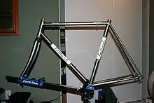 La partie arrière du cadre est composée de deux triangles permettant de tenir l'axe de la roue arrière, ces triangles sont appelés des haubans. Le long tube montant du pédalier vers la selle est appelé tube vertical, c'est dans ce tube que vient se fixer le tube soutenant la selle, la tige de selle. Un tube diagonal et un tube horizontal rejoignent le tube de direction à l'avant du vélo. Ce tube de direction, relativement petit par rapport aux autres, soutient la fourche et les roulements nécessaires pour faire tourner la fourche par l'intermédiaire du guidon.