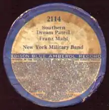 - en 1909, l'Amberol, en cire, aux mêmes dimensions que le Standard Edison, mais avec un sillon deux fois plus fin : 200 spires par pouce (environ 8 spires par mm), donc une durée double, soit jusqu'à 4 minutes 30).