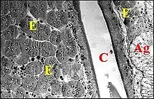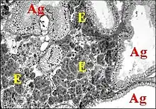 Il l'a retrouvé ensuite, toujours par étude histologique chez Celaenia, membre des Mastophorini (Fig.14), et Poecilopachys, une représentante des Cyrtarachnini (Fig.15)[22].