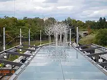 Il était originellement prévu que l'œuvre d'art public représente de manière cartographique la croissance du nombre d'usagers et de la population du quartier[2]. L'œuvre finalement choisie, Stand of Birch de Don Maynard, est un ensemble de sculptures représentant des bouleaux, situées au-delà de l'extrémité nord-est du quai de la station[8].