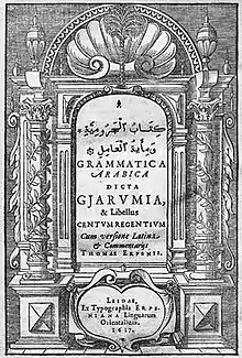 - Ibn Ajarrum, Al-Ajurrumiya / Grammatica Arabica in compendium redacta quæ vocatur Giarrumia, Romæ, in Typographia Medicea, 1592 (grammaire élémentaire de l'arabe) ;