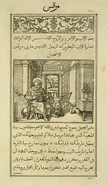 En 1566, après la clôture du concile de Trente, le jésuite Giovanni Battista Eliano[13], chargé de l'enseignement des langues orientales au Collège romain de la Compagnie, sortit sur la presse de l'établissement une version arabe de la profession de foi tridentine, avec des caractères typographiques qu'il avait fait fabriquer. Il la fit tirer avec le texte arabe seul et avec la version latine : I'tiqad al-amāna al-urtuduksīya / Fidei orthodoxæ brevis et explicata confessio. En 1580, Eliano se rendit au Liban avec son confrère Giambattista Bruno pour représenter la papauté au synode maronite de Qannoubine (15-) ; il emporta avec lui de Rome deux textes arabes imprimés en plusieurs exemplaires, à savoir la profession de foi tridentine à faire adopter par le synode et d'autre part un catéchisme pour les paroisses composé en latin par Bruno et traduit par lui en arabe ; mais ces textes étaient écrits en garshouni (c'est-à-dire l'alphabet syriaque utilisé pour la langue arabe), usage graphique commun alors dans l'Église maronite[14].