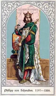 - 21 juin : Philippe de Souabe, antiroi des Romains, duc de Souabe et duc d’Alsace, poignardé à l’âge de 32 ans.
