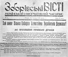L’indépendance de l'Ukraine (aussi l'Acte de restauration de l'État ukrainien) fut proclamée le à Lviv par l'Organisation des nationalistes ukrainiens (OUN) sous la direction de Stepan Bandera. Le Premier ministre était Yaroslav Stetsko, et le président du conseil des Anciens Kost Levytsky.