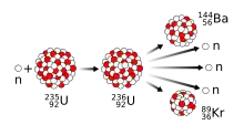 La fission nucléaire, découverte en décembre 1938 par les chimistes Otto Hahn et Fritz Strassmann et les physiciens Lise Meitner et Otto Robert Frisch, est une réaction nucléaire (un processus de désintégration radioactive) au cours de laquelle le noyau d'un atome se divise en deux noyaux (voire trois ou plus) plus petits et plus légers, avec, dans la plupart des cas, émission d'autres particules. Le processus de fission s'accompagne souvent de rayons gamma et il libère une très grande quantité d'énergie, même en le comparant aux autres désintégrations radioactives. Les scientifiques connaissaient déjà la désintégration alpha et la désintégration bêta, mais la fission a pris une importance toute particulière après la découverte qu'il était possible de produire une réaction en chaîne, ce qui a conduit au développement de l'énergie nucléaire et des armes nucléaires. Hahn a reçu le prix Nobel de chimie en 1944 pour la découverte de la fission nucléaire.