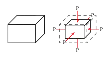 Prenons le cas de la traction ou de la compression d'une pièce cylindrique ou parallélépipédique selon son axe. La traction-compression correspond à des forces s'exerçant perpendiculairement aux sections de ces pièces ; elle est dite uniaxiale car les côtés de la pièce ne sont pas contraints, toutes les forces sont sur un même axe.