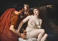 Ce tableau est nommé de plusieurs façons dans les textes des chercheurs et des historiens de l’art. Il est désigné sous le nom de Délia pleurant Corydon par le musée Sainte-Croix[5], en référence à l’inscription présente sur l’urne. Cette allusion volontaire à la mythologie rappelle l’attrait de Fabre pour l’Antiquité. À Florence, le peintre consacre beaucoup de temps à la lecture et à l’étude des nombreuses œuvres littéraires antiques que possède la comtesse d’Albany dans sa bibliothèque, et notamment les écrits de Virgile[6].