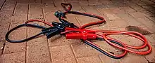 - Le démarreur a pour objectif d'enclencher la mise en rotation d'un moteur à combustion interne à l'aide d'une source d’énergie extérieure (électricité ou air comprimé[3]). Sur les premières automobiles, le lancement du moteur s'effectuait grâce à une manivelle calée en permanence, ou amovible, sur le vilebrequin et que l'on actionnait à la main[4].