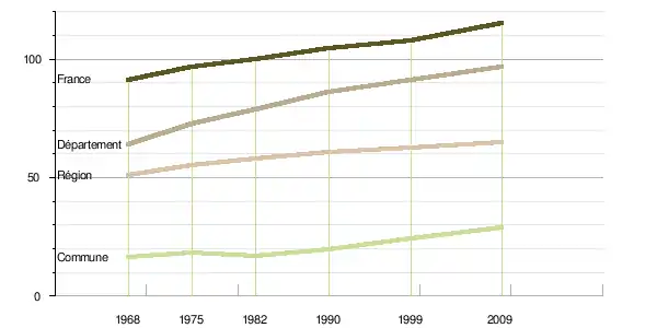 | 1968 | 1975 | 1982 | 1990 | 1999 | 2009 | Évolution annuelle moyenne sur la période 1968-2009 (%) | ||