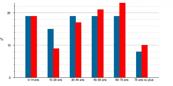 La population a vieilli entre 1999 et 2009, le taux des personnes de 60 ans et plus passant de 27 % à 33 %, à l'instar des populations du département et de la France qui sont aussi passées respectivement de 20 à 23 % pour le Département et de 20 à 23 % pour la France métropolitaine.