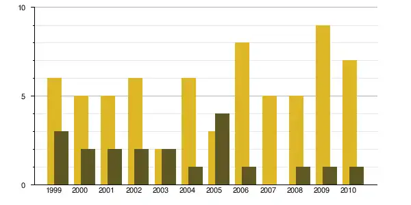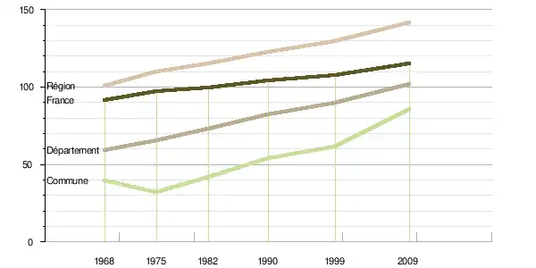 | 1968 à 1975 | 1975 à 1982 | 1982 à 1990 | 1990 à 1999 | 1999 à 2009 | ||