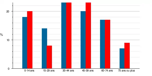 La population a vieilli entre 1999 et 2009, le taux des personnes de 60 ans et plus passant de 24 % à 26 %, à l'instar des populations du département et de la France qui sont aussi passées respectivement de 18 à 20 % pour le Département et de 20 à 23 % pour la France métropolitaine.