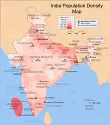 L'Inde est appelée à devenir plus peuplée que la Chine en 2023 selon l'ONU, avec quatre années d’avance sur les prévisions : de 1,2 milliard d’habitants en 2011, la population indienne devrait atteindre 1,4 milliard en 2023, et près de 1,7 milliard en 2050[20]. Selon des estimations publiées le 19 avril 2023 par le Fonds des Nations unies pour la population (UNFPA), la population de l'Inde atteindra 1,4286 milliard d'habitants à la mi-2023, dépassant de trois millions la population chinoise, estimée à 1,4257 milliard. Cependant, les estimations de l'ONU sont issues de projections ; aucune statistique n'a été publiée récemment par le gouvernement indien, qui n'a effectué aucun recensement depuis 2011. Un nouveau dénombrement devait avoir lieu en 2021, mais il a été retardé en raison de la pandémie de Covid[18].