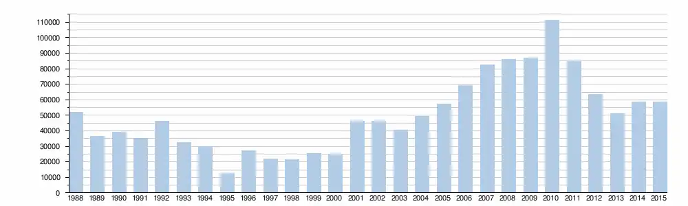 | Année | 2000 | 2001 | 2002 | 2003 | 2004 | 2005 | 2006 | 2007 | 2008 | 2009 | 2010 | 2011 | 2012 | 2013 | 2014 | 2015 | 2016 | 2017 | 2018 | 2019 |