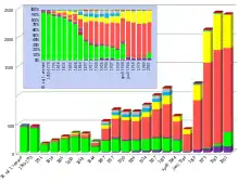 | Juifs | 24 168 | 4,42 | 45 926 | 6,4 | 65 452 | 5,8 | 26 374 | 2,2 | 25 614 | 1,4 | 17 371 | 0,7 | 5 500 | 0,2 | ||||