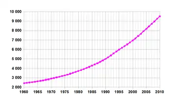 | Taux de mortalité | 7,7 ‰ (2018)[8],[9] |