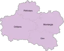 Le département du Loiret comporte trois arrondissements. La population se concentre principalement sur l'arrondissement d'Orléans, qui recense 66 % de la population totale du département en 2021, avec une densité de 154,9 hab./km2, contre 25 % pour l'arrondissement de Montargis et 9 % pour celui de Pithiviers.
