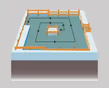 Pour les toits, les services de déneigement protègent leurs employés contre les chutes en plaçant des garde-corps autour du toit, ou en les équipant de protections individuelles comme un harnais de sécurité fixé à un point d'ancrage dont la résistance est appropriée[19]. Un sentier est ouvert dans la neige du centre vers l'un des versants du toit. Ce sentier sert de point de chute de la neige vers le sol. Le déneigement se fait ensuite en suivant une spirale du centre du toit vers l'extérieur[20]. L'installation de barrières autour de ce point de chute évite qu'un passant reçoive la neige sur la tête[19].