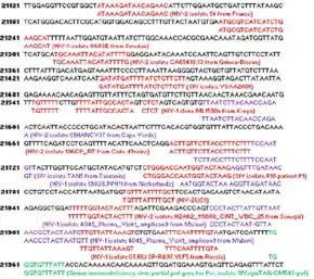 Le Pr Luc Montagnier, co-découvreur du VIH régulièrement mis en cause pour des déclarations pseudo-scientifiques ou jugées farfelues, suggère qu'entre les nucléotides 21 120 et 22 000 du SARS-Cov-2, il existe un assemblage non pas de 4 mais d’au moins 12 différents fragments du virus VIH-1, VIH-2 et SIV datant de différentes époques[122]. Les nucléotides compris entre 21 120 et 22 000 concernent le NTD de la protéine S du SARS-CoV-2. Le NTD contient des récepteurs permettant de se lier à des globules blancs[123],[124]. Luc Montagnier émet l'hypothèse selon laquelle le SARS-CoV-2 serait issu d'une manipulation génétique ayant adjoint des morceaux de génome du VIH. La communauté scientifique reste circonspecte[121]. Les 12 séquences identifiées par le Pr Luc Montagnier sont très courtes, de l’ordre de 25 nucléotides chacune.