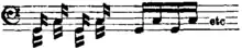 Il existe également le "triple détaché", utilisé dans les passages de triolets : "tee-tee-kee-tee-tee-kee", ou plus rarement "tee-kee-tee-kee-tee-kee"[3],[alpha 2].