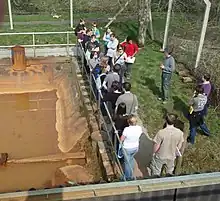 Cette lagune est associée à une tour à biofilm (aérobie) qui favorise l'apparition de celui-ci pour dégrader de nombreux composés organiques, fixer les ions métalliques en formes oxydées ou insolubles (par exemple, en transformant le fer ferreux en fer ferrique), oxyder l'ammoniaque (via une phase nitrite) en nitrate, et précipiter d'autres métaux que l'on retrouvera dans les boues de la lagune sous forme d'hydroxydes ferriques. Ici, la décharge de Nantmel (en).