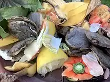 - les déchets fermentescibles[36], également appelés déchets organiques[37] : l'Ademe précise que la définition des déchets organiques n’est pas établie en tant que telle dans la réglementation mais la liste des déchets de ce type auxquels il est fait référence par ce terme peut être déduite de l’analyse de la nomenclature des déchets du 18 avril 2002[38]. Ce sont l’ensemble des résidus ou sous-produits organiques engendrés par l’agriculture, les industries agroalimentaires ou les collectivités composés de matière organique non synthétique caractérisée par la présence d’atomes de carbone issus d’organismes vivants, végétaux ou animaux. Les déjections animales ne sont pas des déchets mais le deviennent quand elles sont mal gérées (excédents non maîtrisés) ;